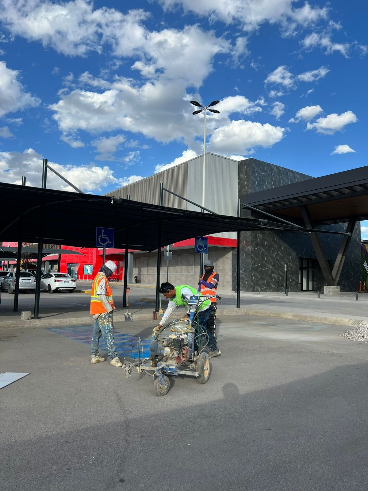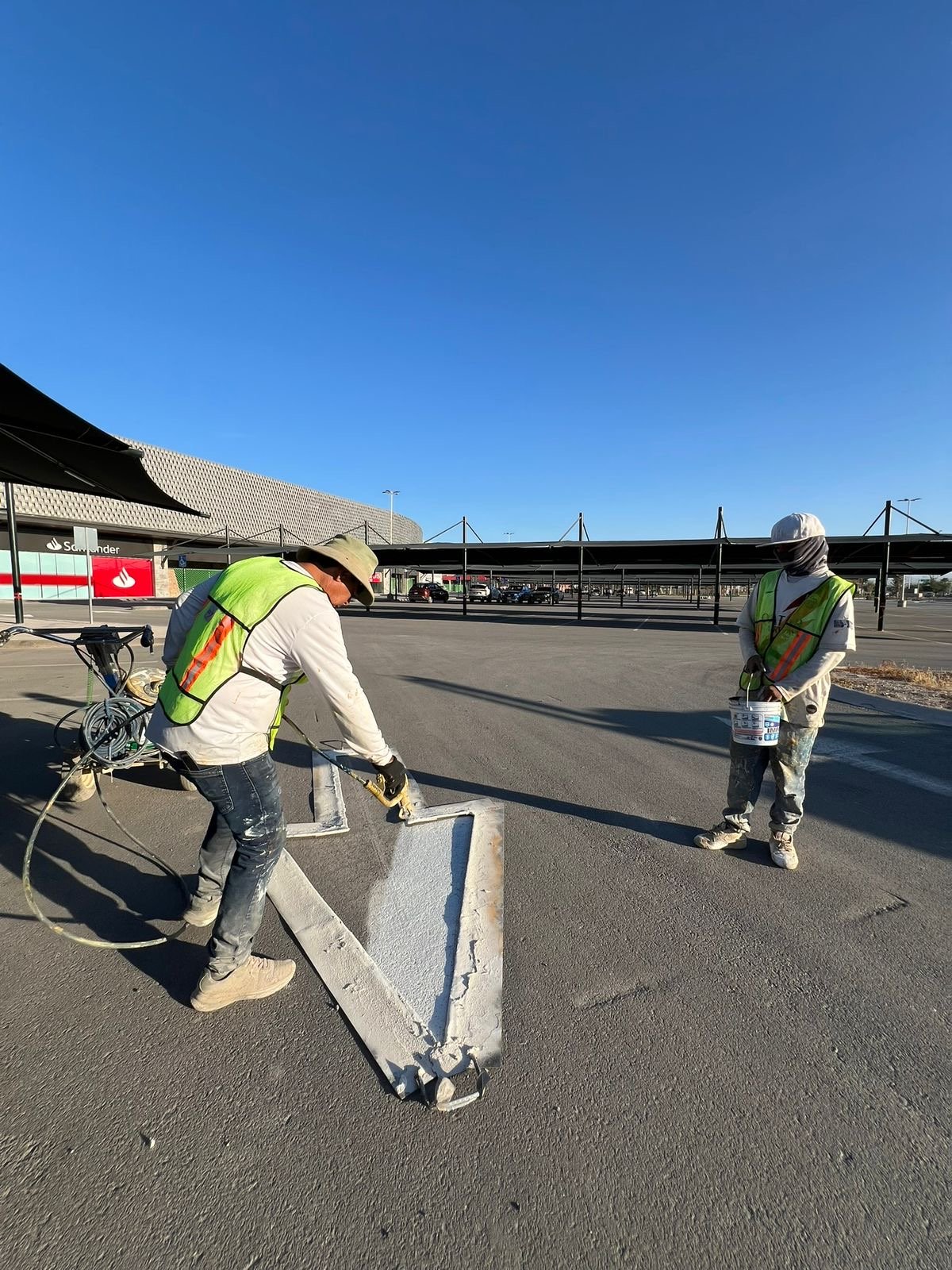 Pintura de cajones de estacionamiento e instalación de señalamiento vial
