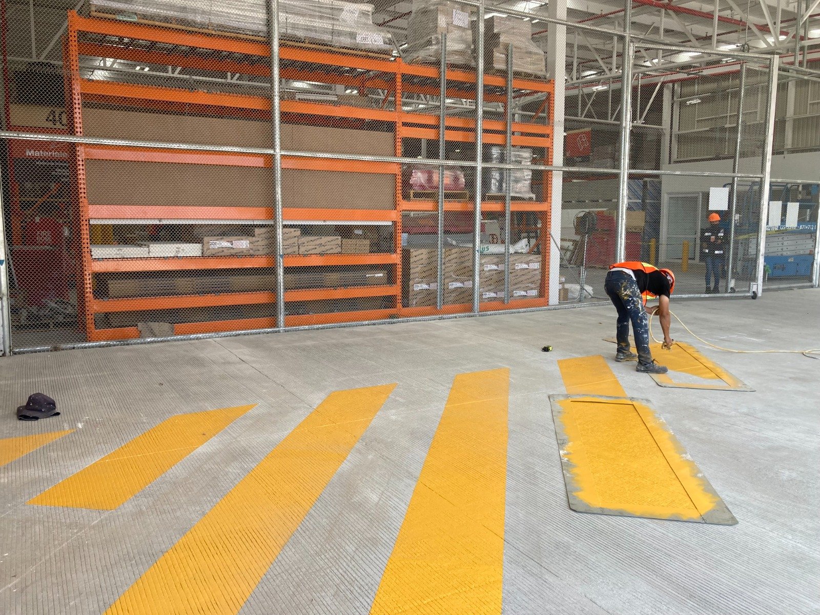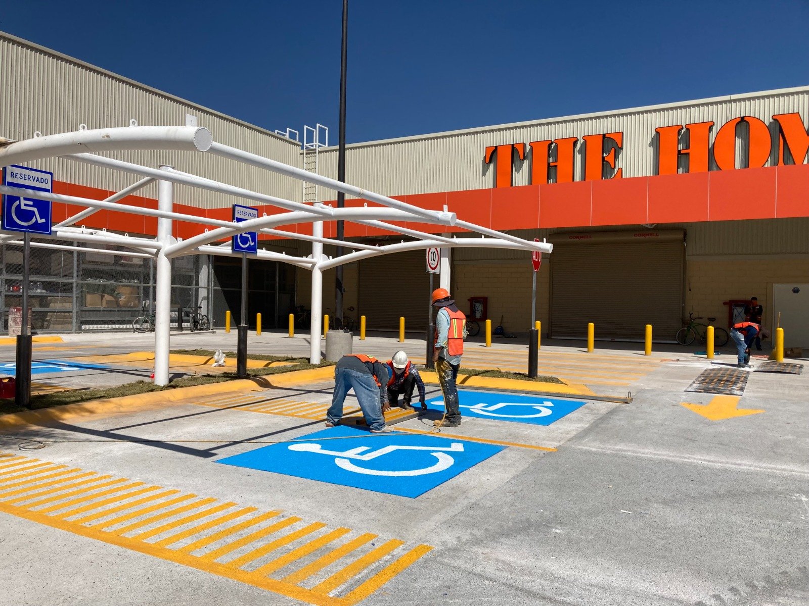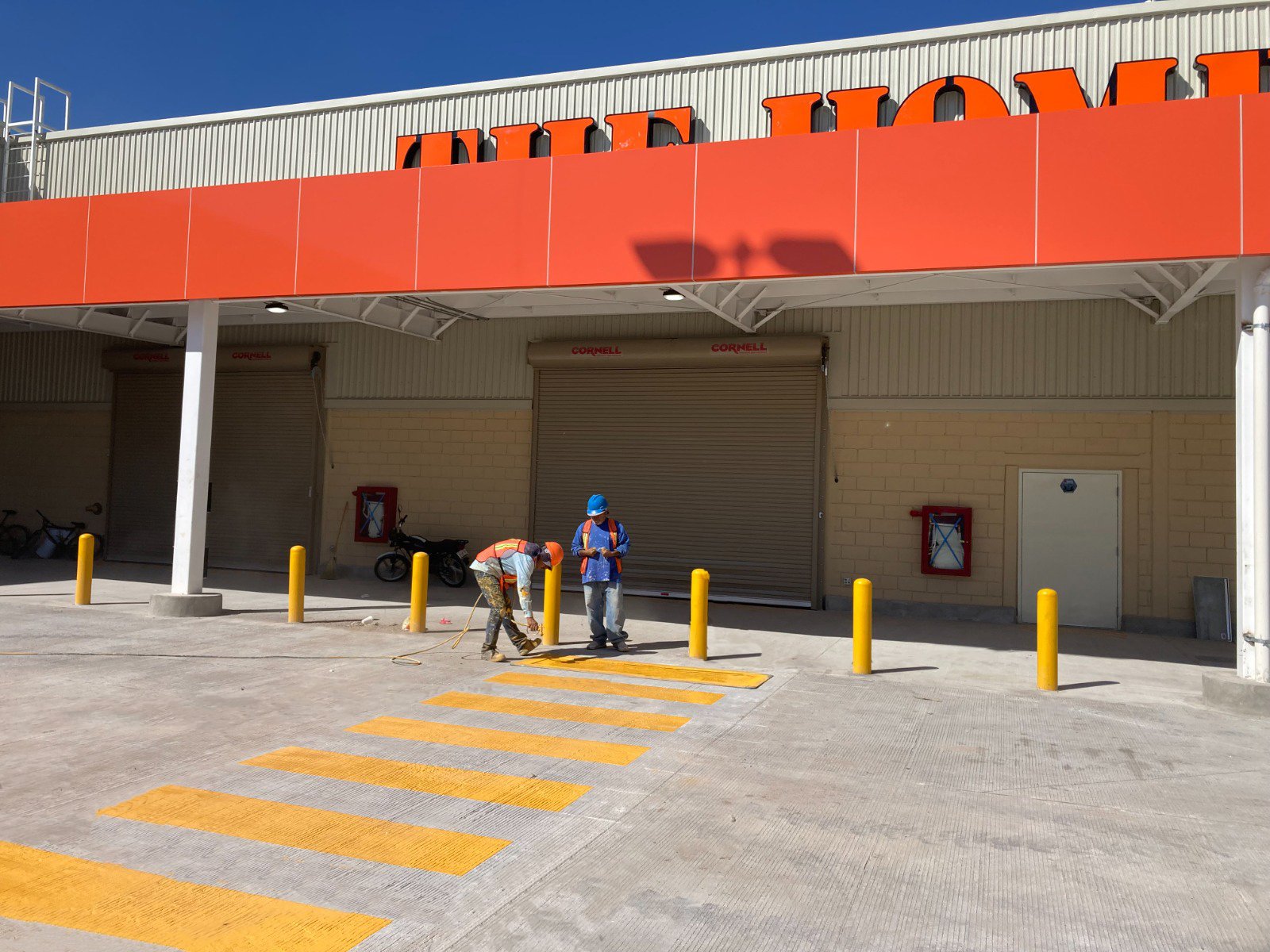 Aplicacion de pintura en cajoes de estacionamiento, pintura epóxica al interior de la tienda,instalacion de señalamiento y topes de estacionamiento