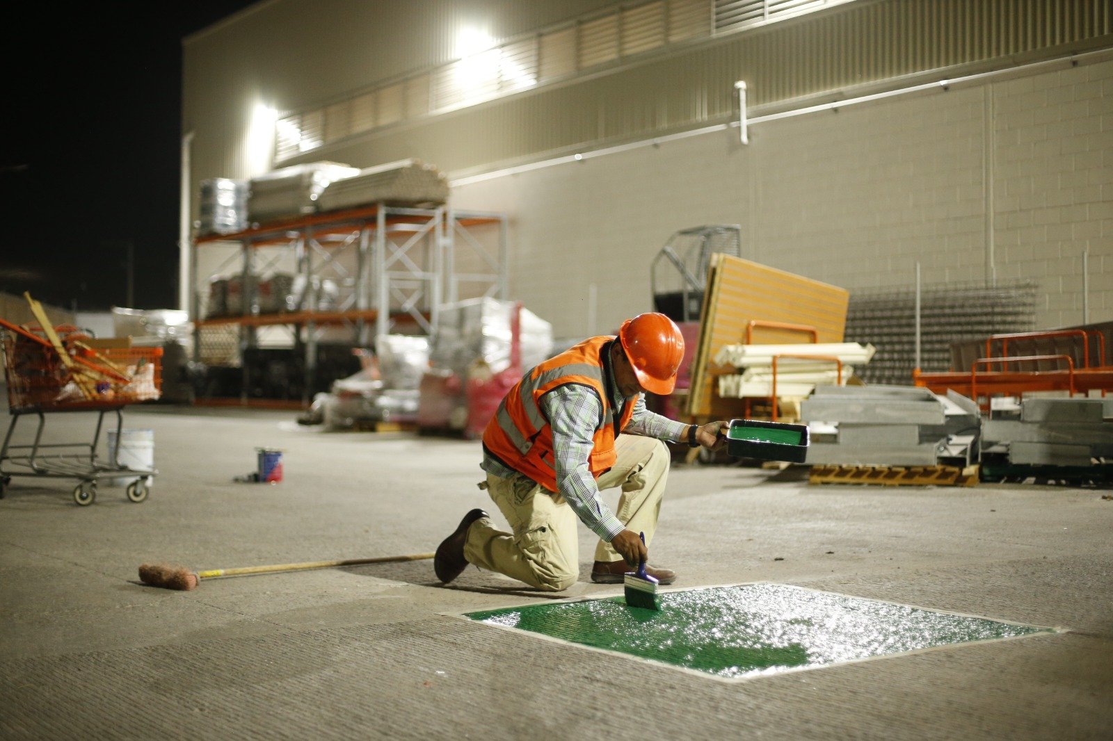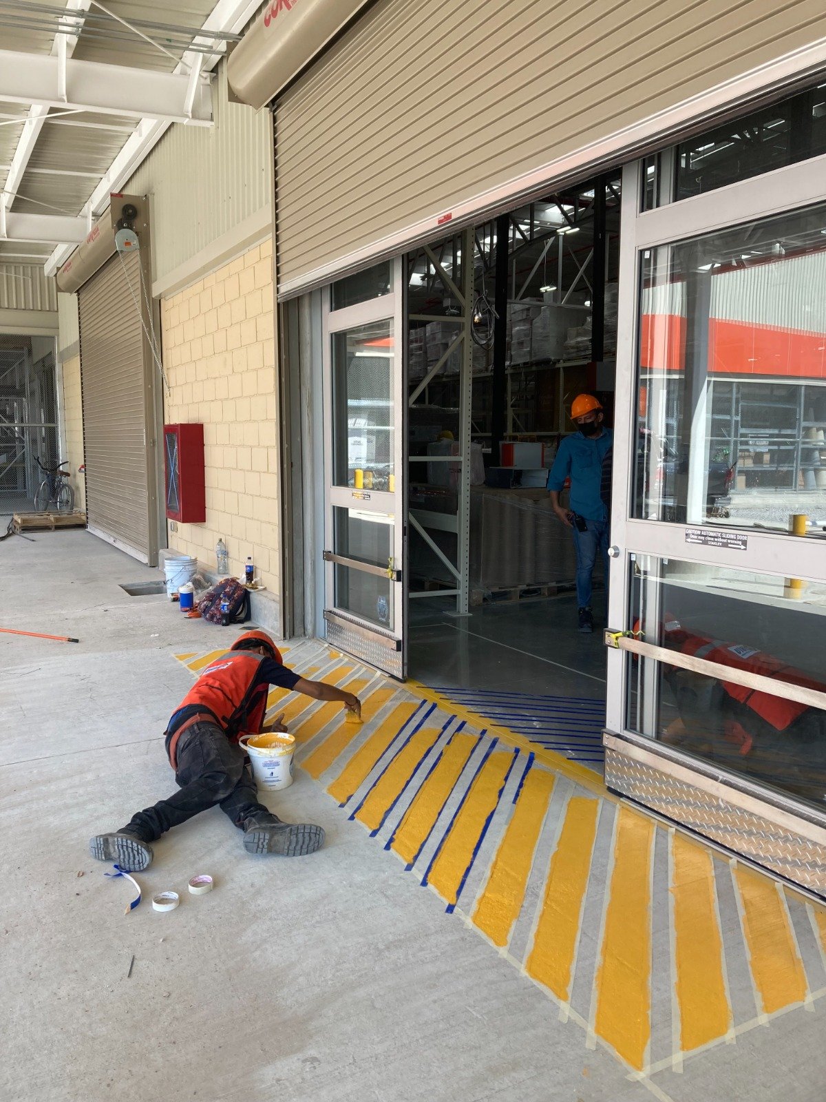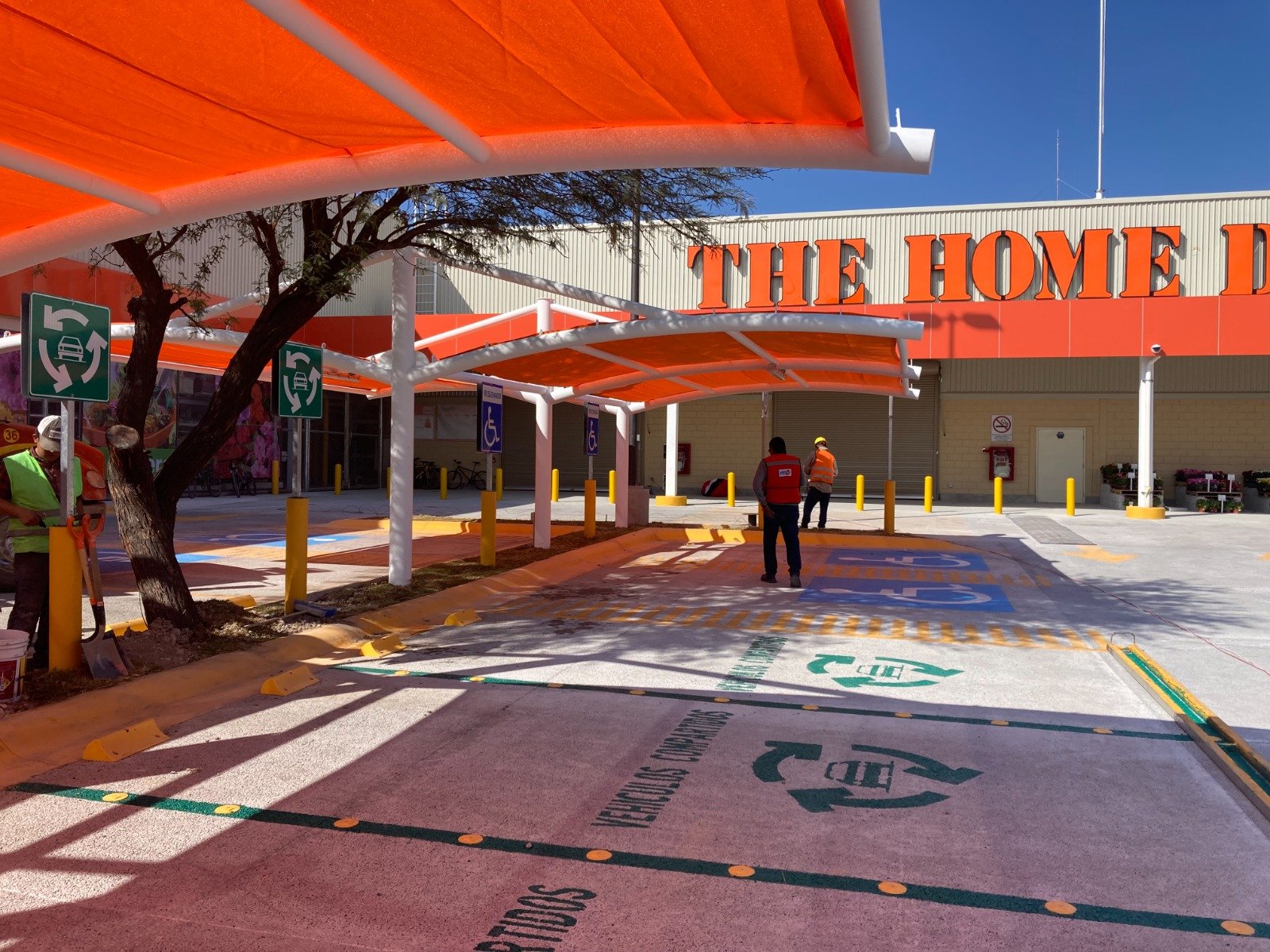Aplicacion de pintura en cajoes de estacionamiento, pintura epóxica al interior de la tienda,instalacion de señalamiento y topes de estacionamiento