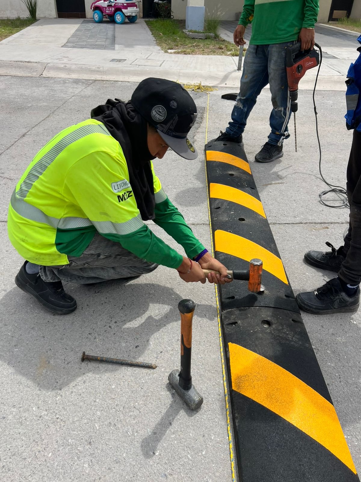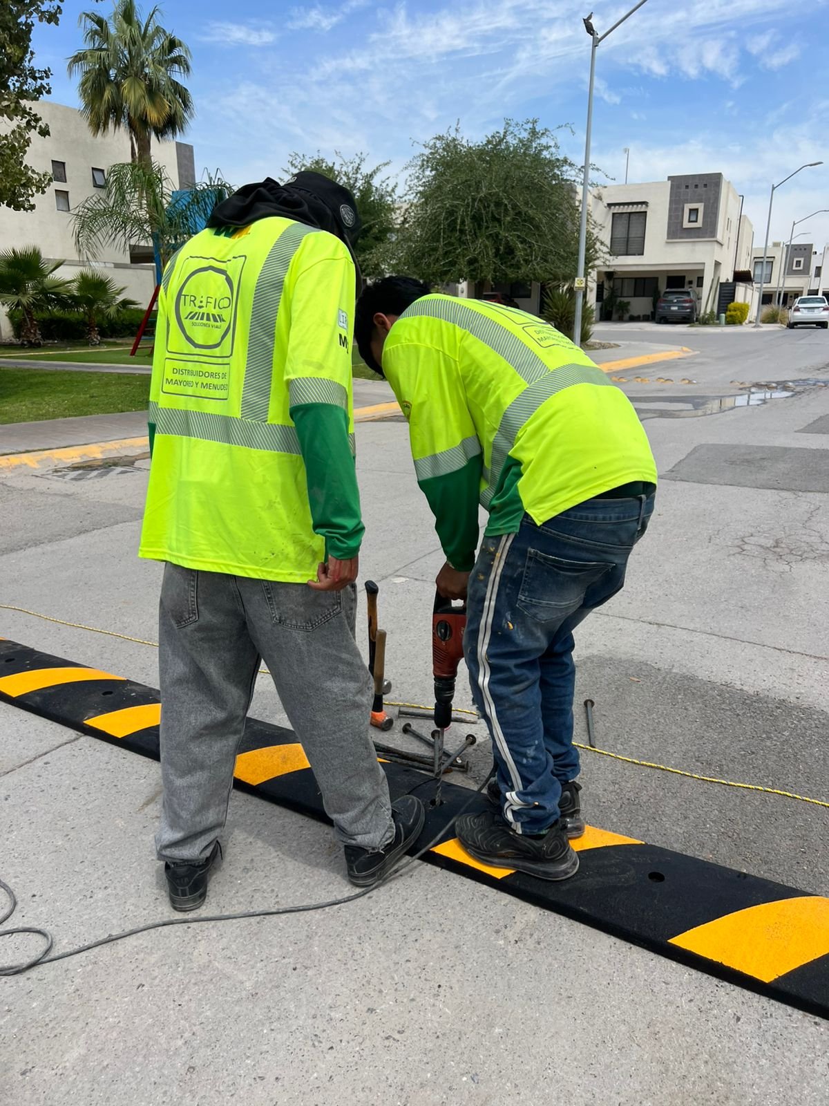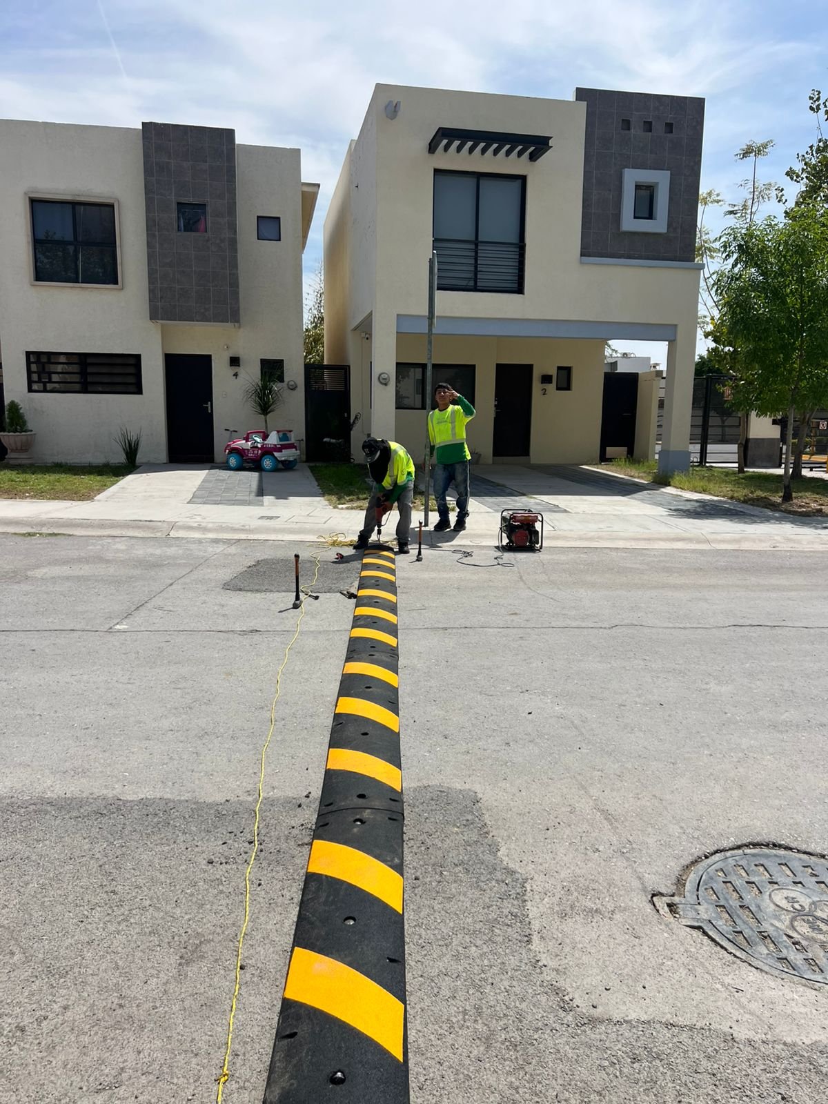 Instalacion de reductores de velocidad ys eñalamiento vial en circuito residencial
