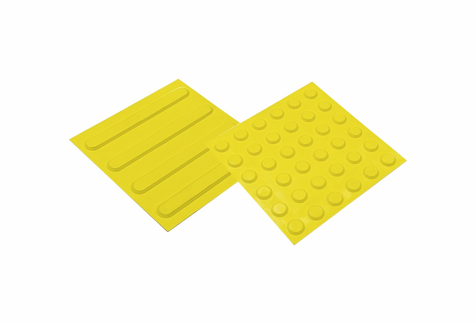 Piso podotáctil de aluminio y hule PVC, diseñado para guiar y alertar a personas con discapacidad visual en espacios públicos.