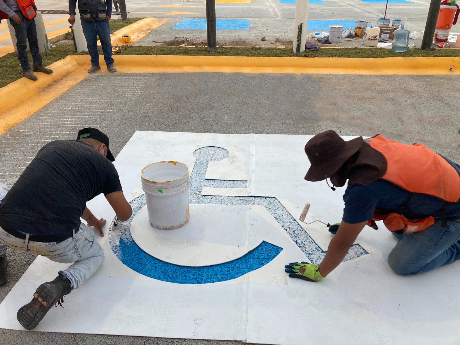 Aplicacion de pintura en cajoes de estacionamiento, pintura epóxica al interior de la tienda,instalacion de señalamiento y topes de estacionamiento