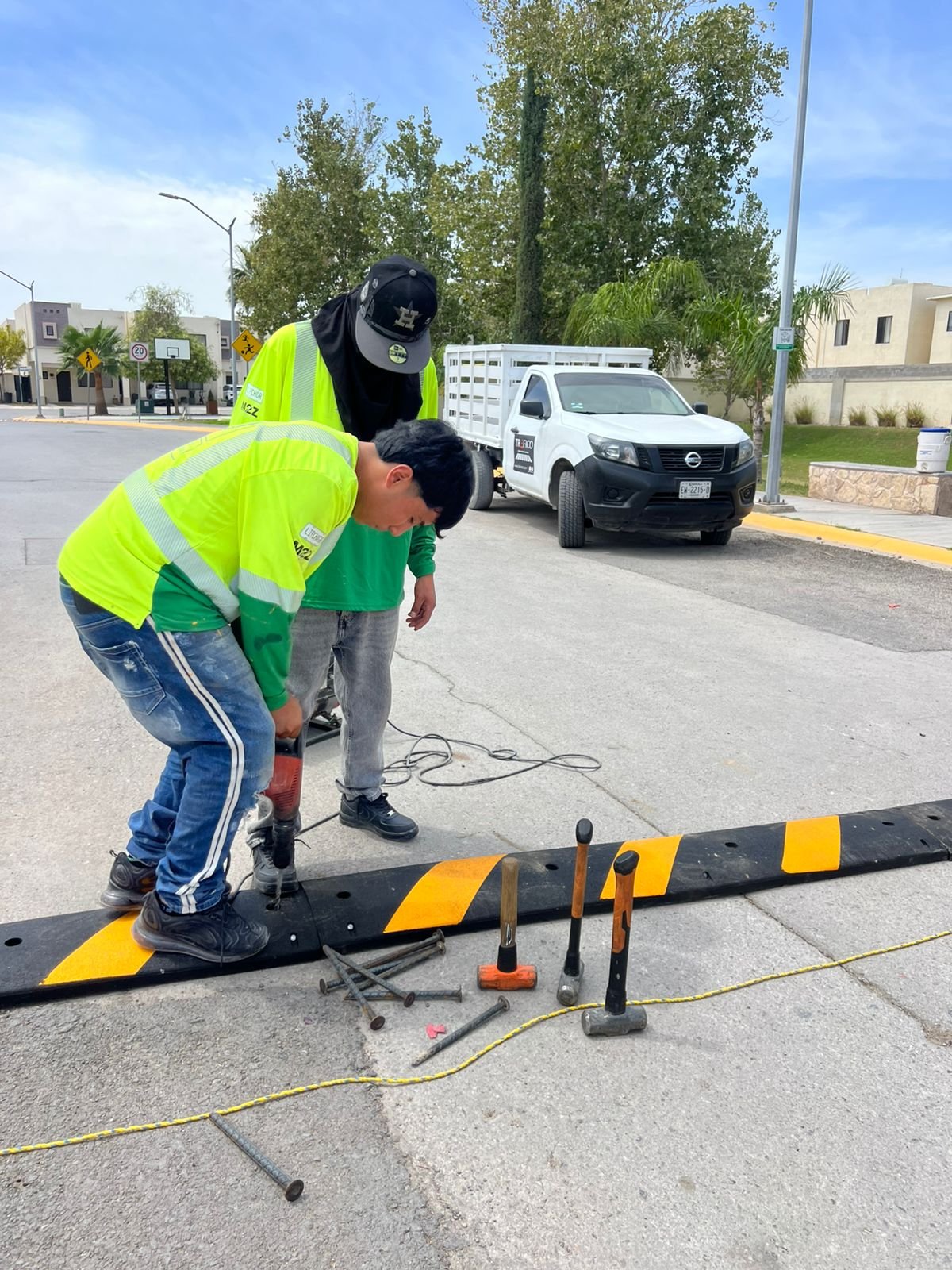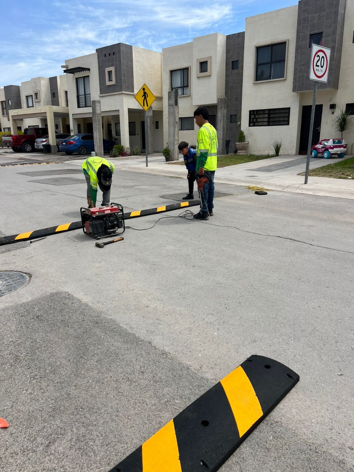 Instalacion de reductores de velocidad ys eñalamiento vial en circuito residencial