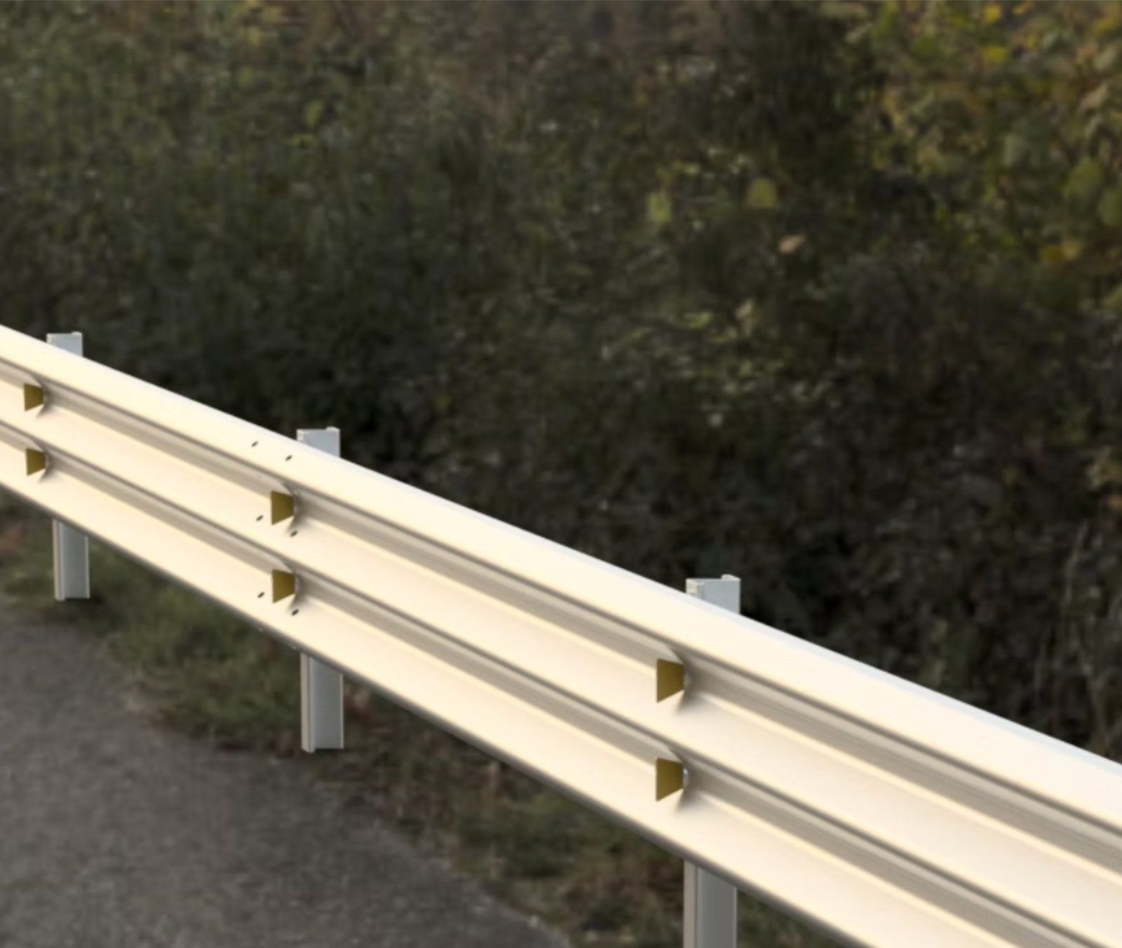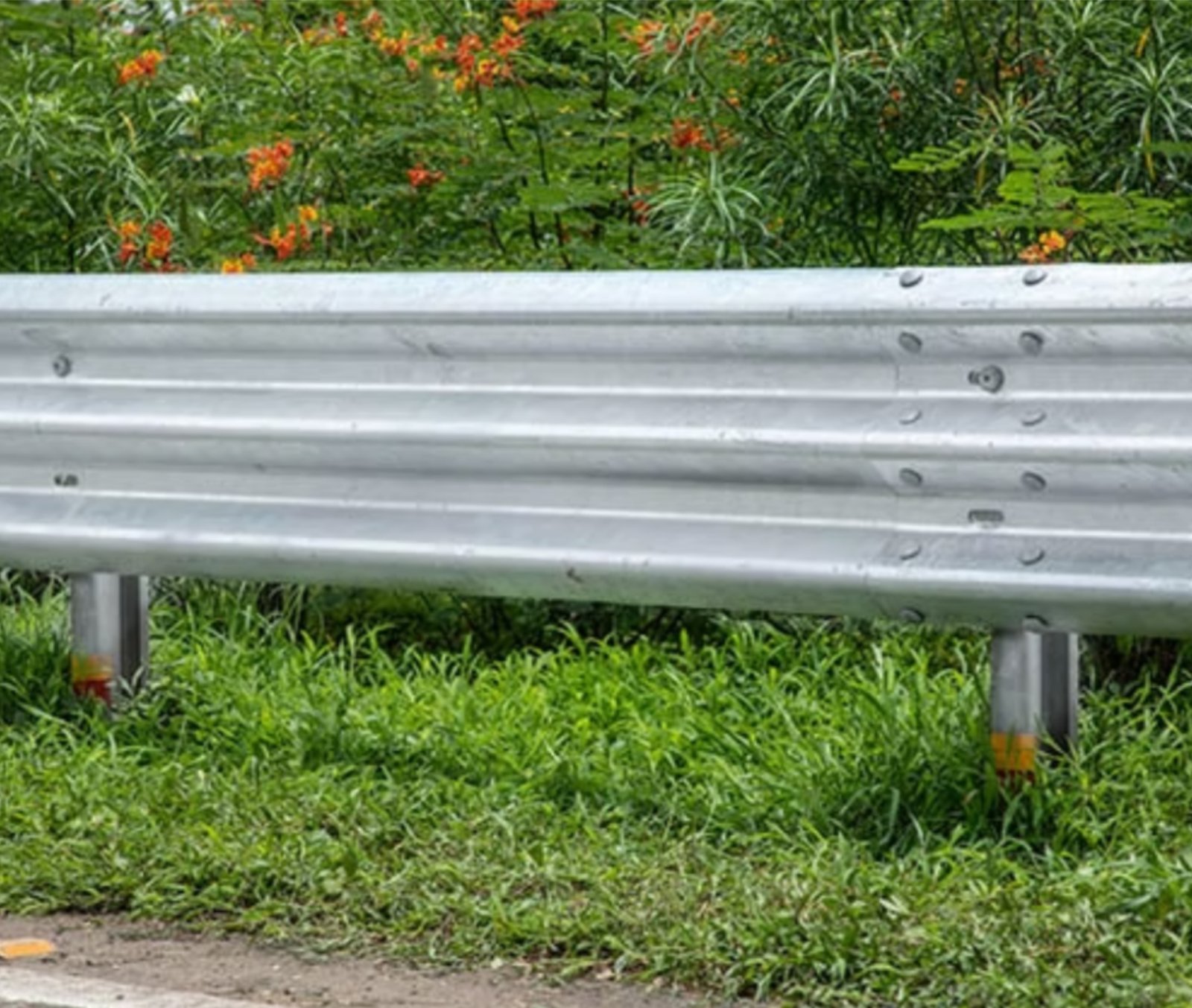 Defensa metálica de 3 crestas diseñada para protección vial, ideal para carreteras y zonas de alto riesgo.